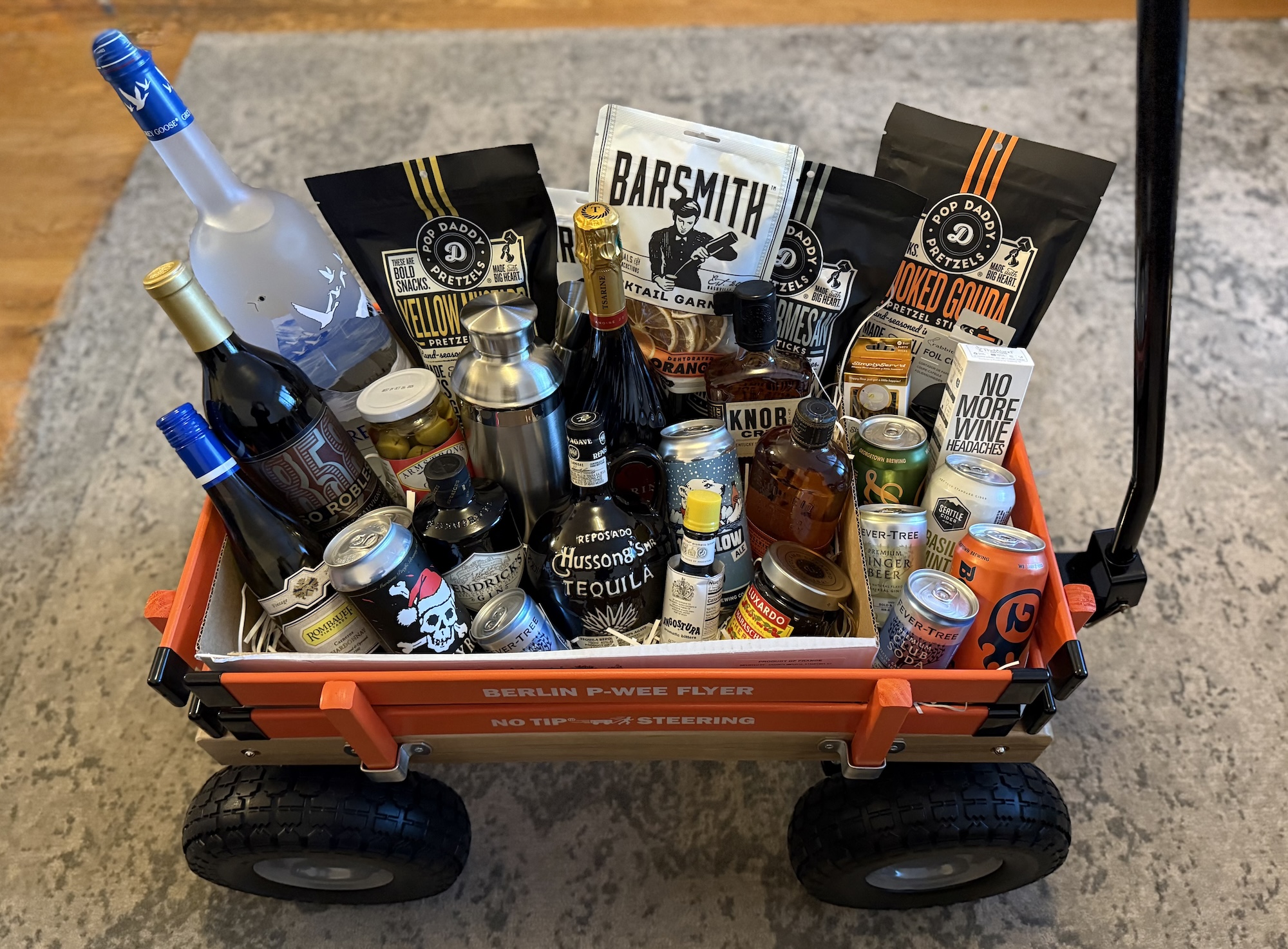 Stocked with an amazing assortment of liquor, wine, beer, mixers, snacks, and bar tools. Featuring Grey Goose, Bulleit & Knob Creek Bourbon, Kendricks Gin, and Hussong's Reposado Tequila