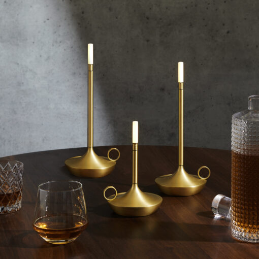 Truly the most gorgeous modern take on the classic candlestick - these brass Wick lights are rechargeable, portable, durable LED lamps for your bedside, fireside, or your forlorn wanderings through the countryside.